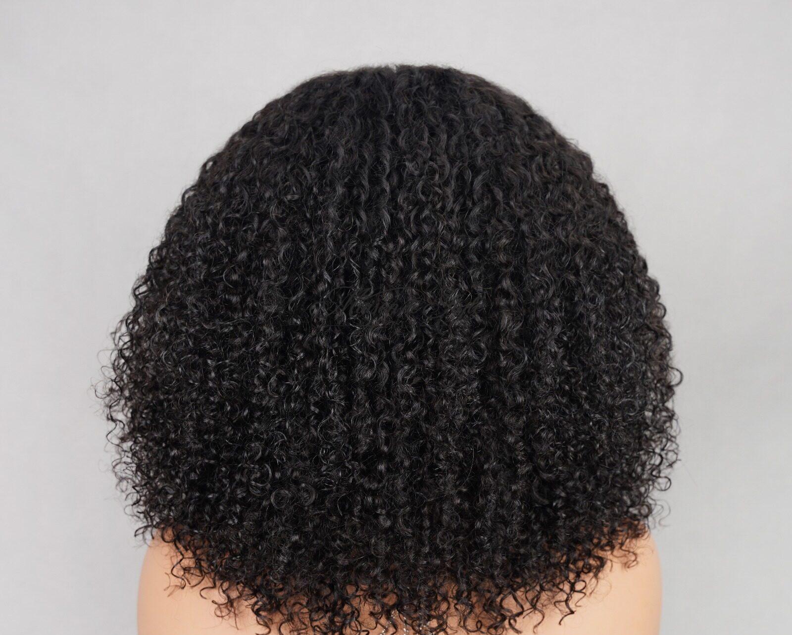 Human hair wig designed for everyday wear. Features a natural-looking and it curly texture. Suitable for personal use.