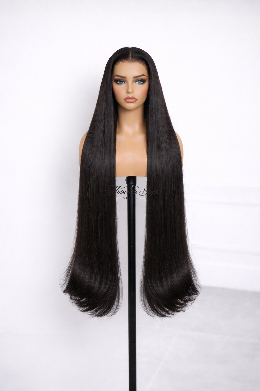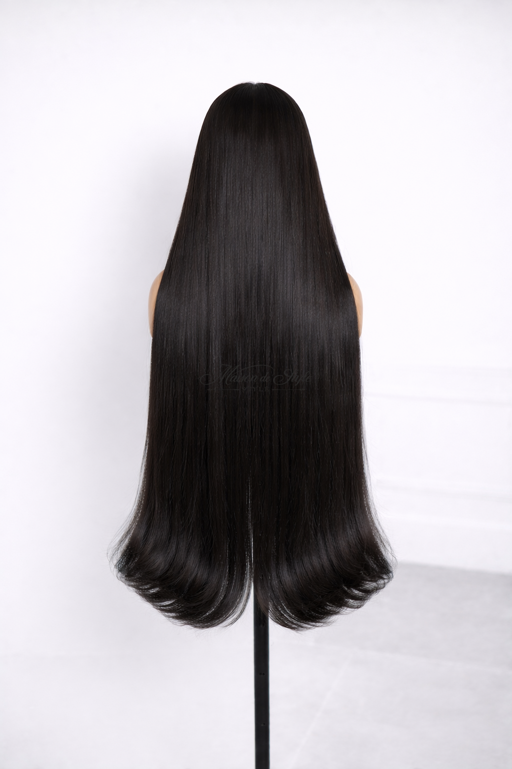 This wig features a straight texture and a lace front cap designed to create a natural-looking hairline. The cap construction allows airflow and is suitable for regular wear.